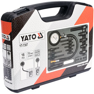 Yato Probador De Compresion Para Motores De Diesel (Juego De 16 Piezas), Adaptadro De Bujias Incandescentes: M10 X 183, 91, 102, 113, 6 Mm, 3/25'': 64/135, M12 X 1.25: 47 Mm; M22X1/5: 118 Mm; Injector Adaptor: M20 X1.5 (75 Mm), M22 X 1.5 (73 Mm), M24 X