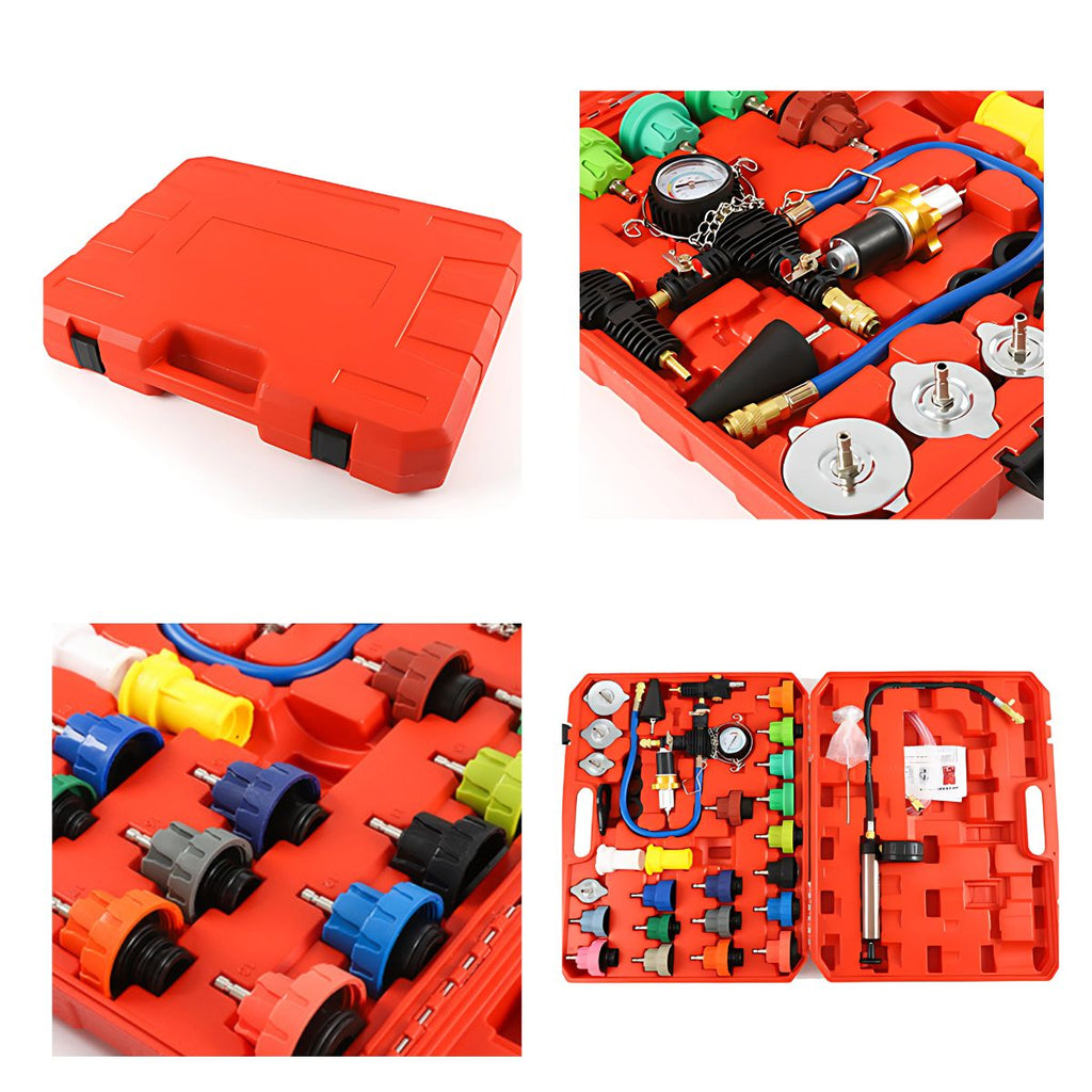 - Juego completo de 34 piezas para prueba de presión en radiadores y detección de fugas.