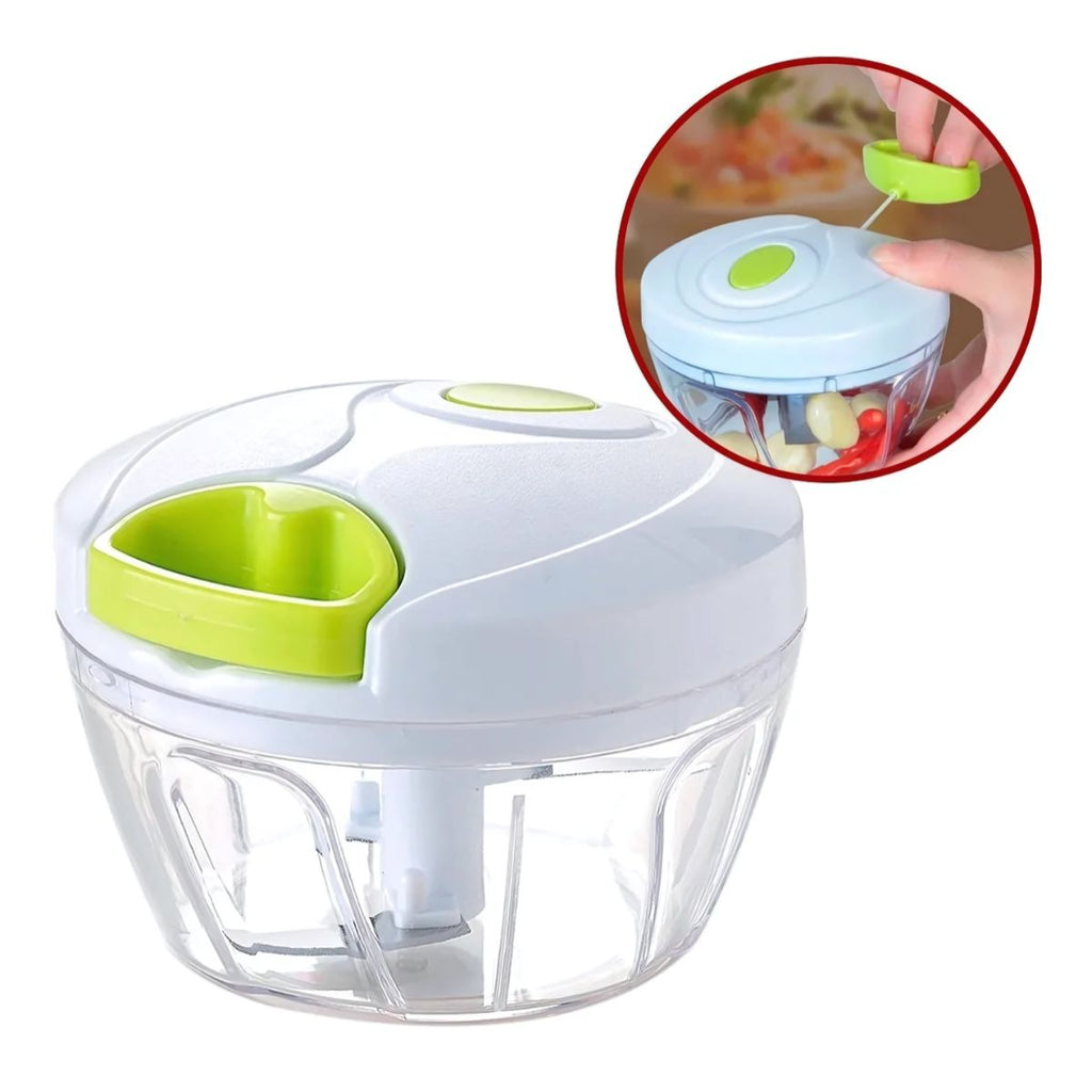 Procesador de Alimentos Manual por Cuerda. Mini picador manual de 3 cuchillas. Tritura Ajo, Verduras y Frutas.