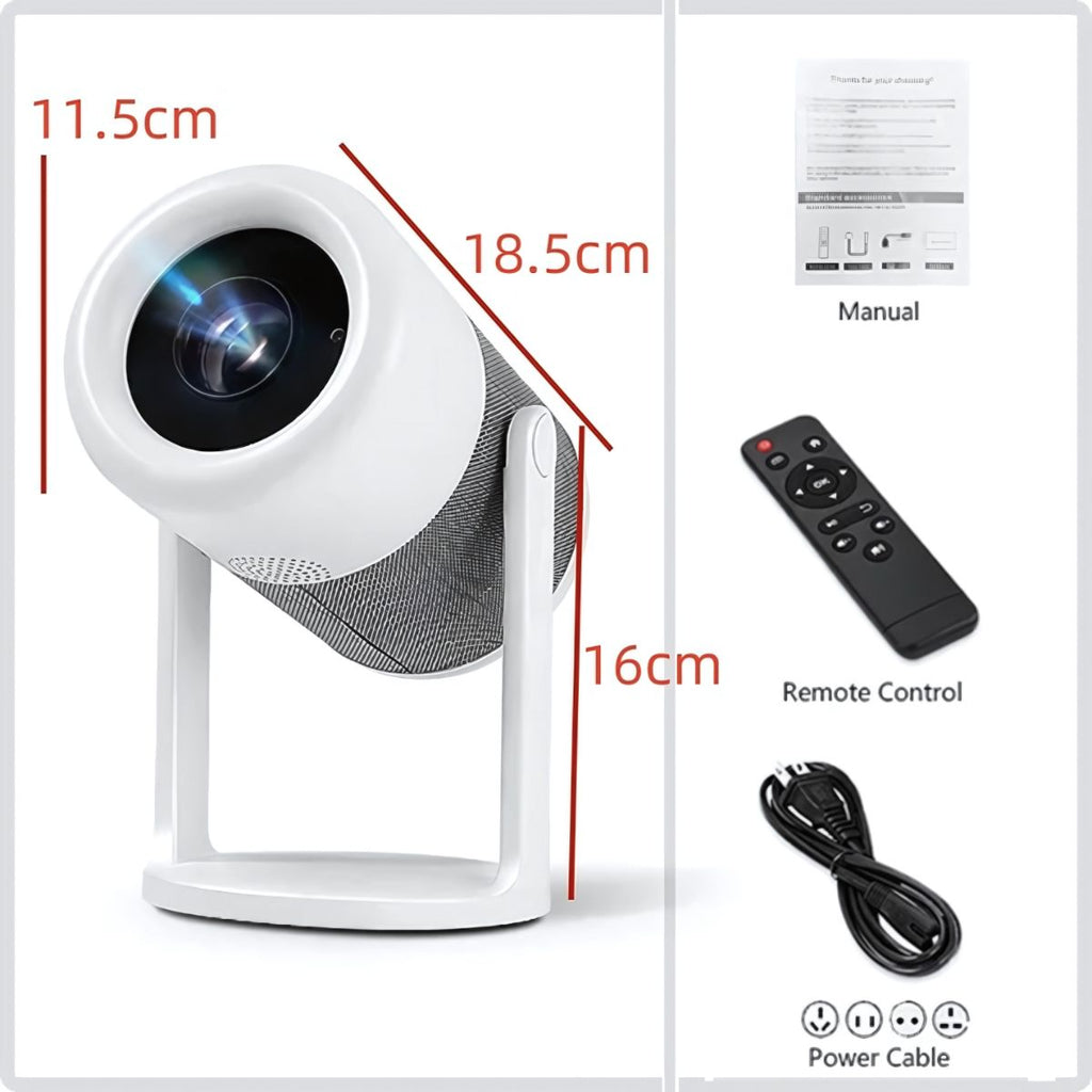 Proyector 4K Android 11 con WiFi Dual-Band, Bluetooth y Rotación 360°.