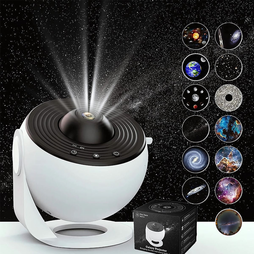 - Proyector planetario con 13 diapositivas en calidad 4K para representar el sistema solar, galaxias, nebulosas y más.