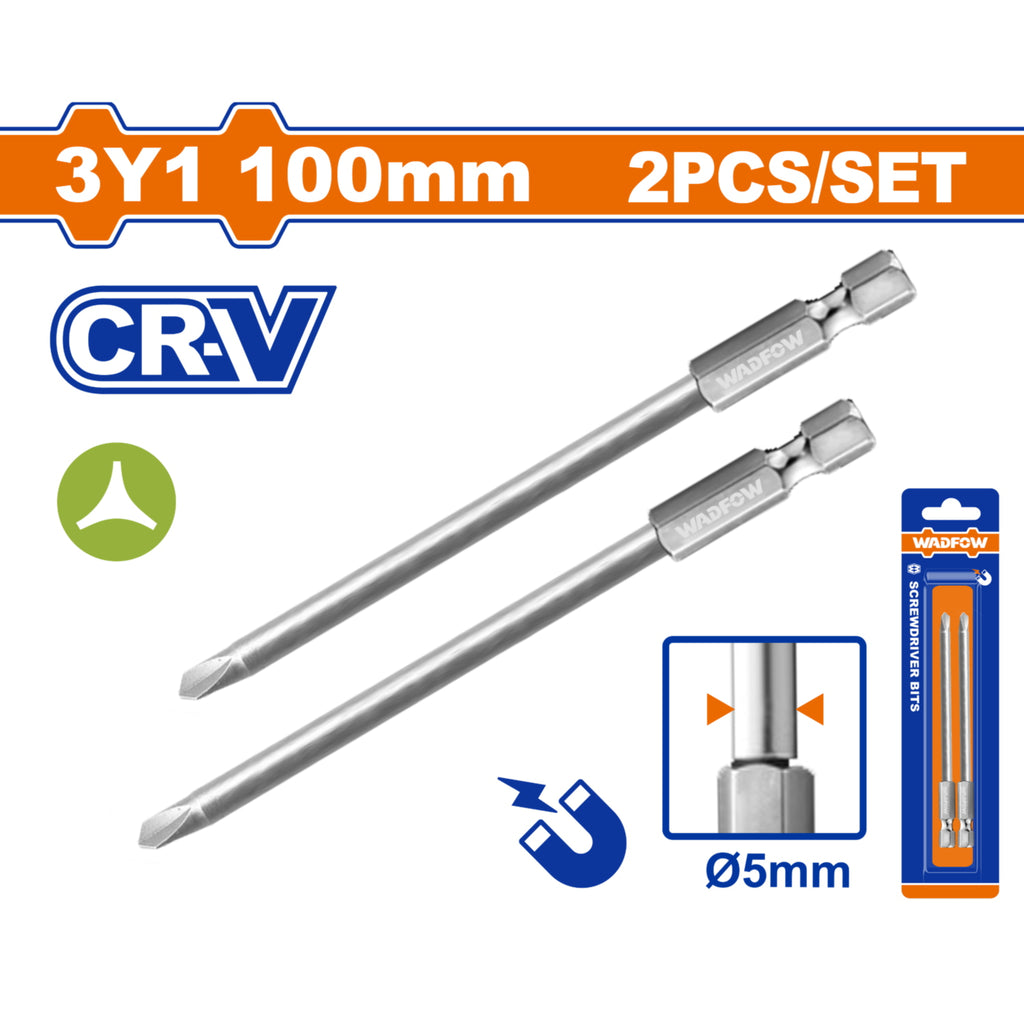 | Características | Puntas de Destornillador 3 alas Cr-V Punta magnética. Set de 2 piezas. |