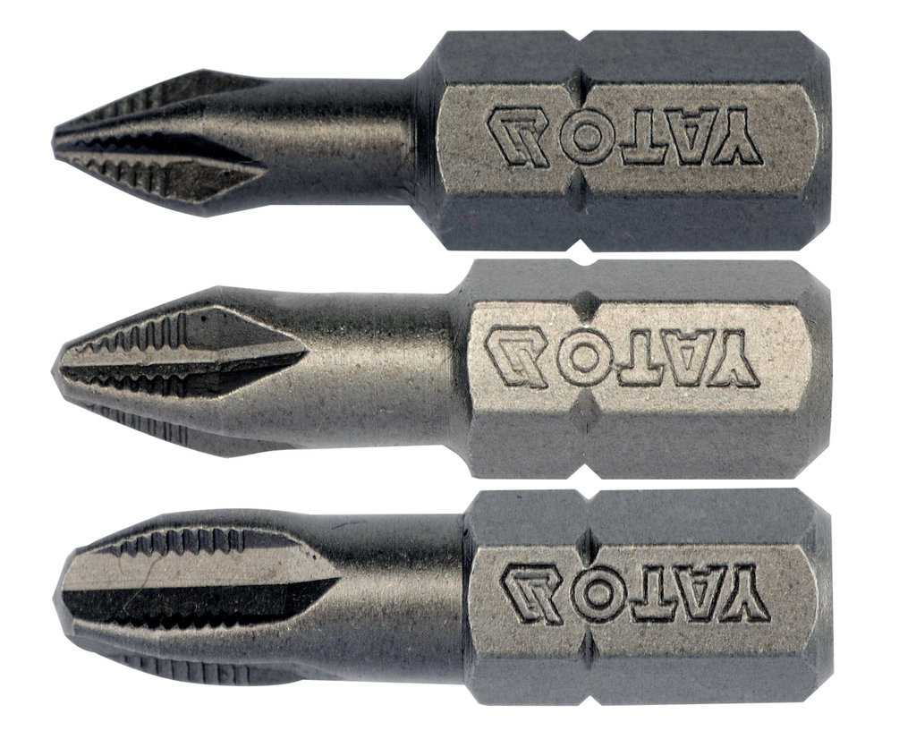 Puntas De Destornillador. 10 piezas, 1/4'' X 25 Mm, Hrc 58-61, Forjado En Frio Con Acero, Material: Acero S2, Granallado, protección Anticorrosiva, Sistema Antideslizante, Estampado: S2, Logotipo De Yato.