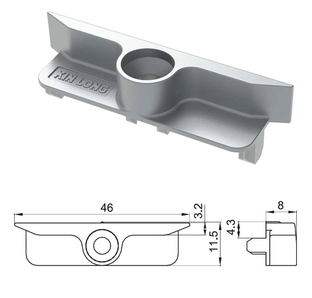 •Función: Base de anclaje para pestillo o cerradura multipunto