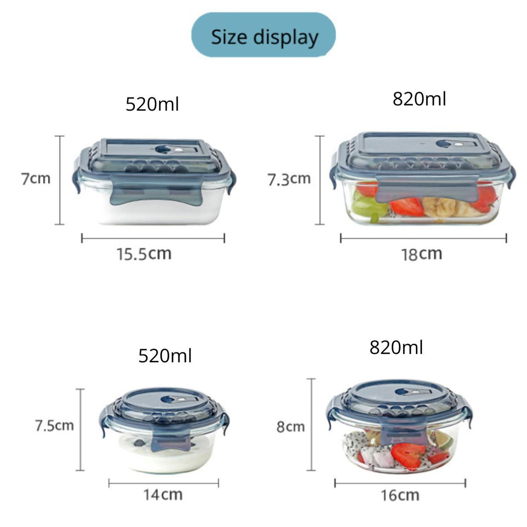Recipientes de vidrio con tapa hermética. Set de 4 piezas (820 ml, 520 ml). Vasijas. Cajas de almacenamiento selladas.