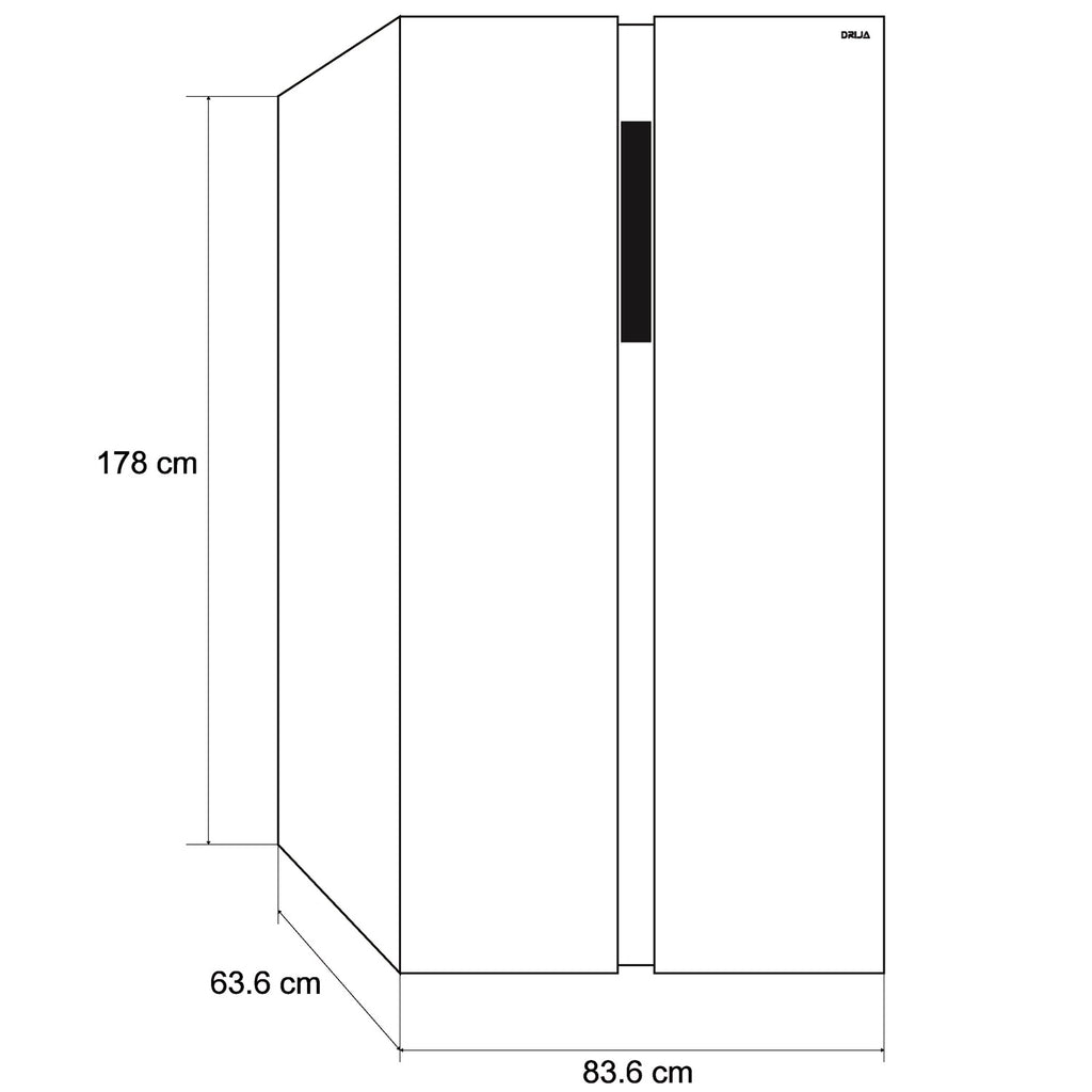 - Ancho 83.6 cm x profundidad 63.6 cm x alto 178 cm.