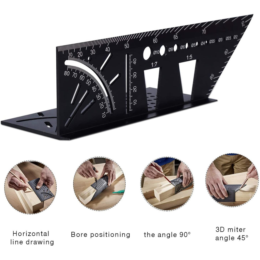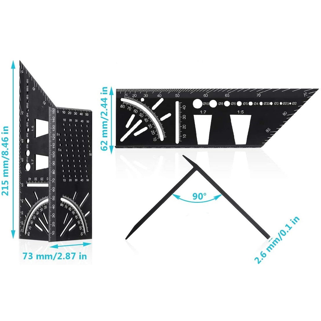 Plantilla guía multifuncional para medición para madera, aleación de aluminio, mármol y metal. Aplica para una gran variedad de funciones, como regla para medición, regla transportador, plantilla para realizar cortes de cola de milano, entre otras.