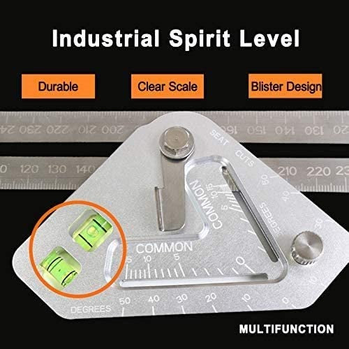 Está hecho de aluminio sólido con capa de protección anodizada, ilustraciones grabadas con láser, regla angular con acero inoxidable de alta precisión y alta.