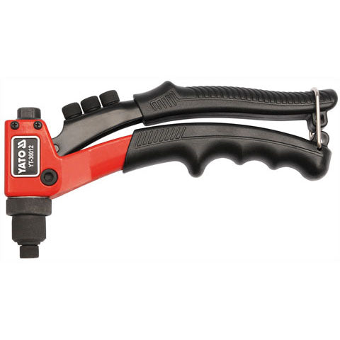 Yato Remachadora Manual De 2.4-4.8 Mm, Longitud: 200 Mm, Material Del Mango: Acero Al Carbono, Material Del Cuerpo: Aluminio Fundido A Presion (Adc12), Mandibula De 3 Piezas; Material De La Mandibula: Acero De Aleacion Cr-Mo, Espesor Del Mango: 2.5 Mm,