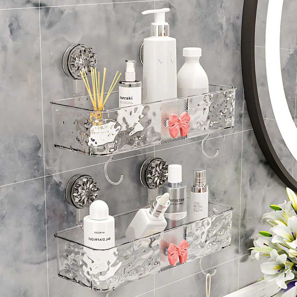 - Repisa organizadora de pared fabricada en material acrílico transparente resistente