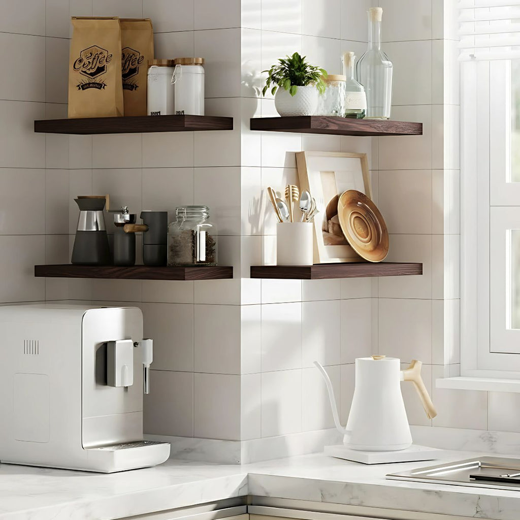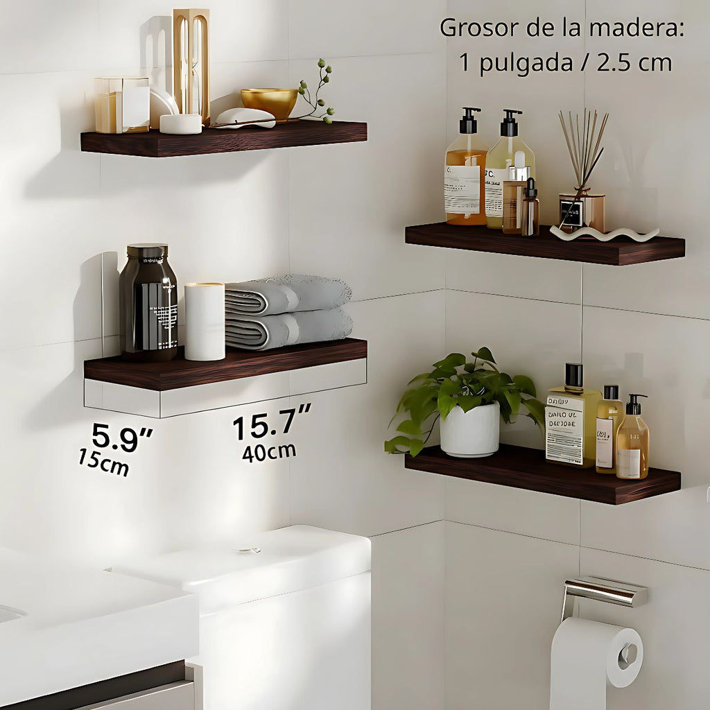 - Juego de repisas flotantes de madera con diseño rústico y moderno.