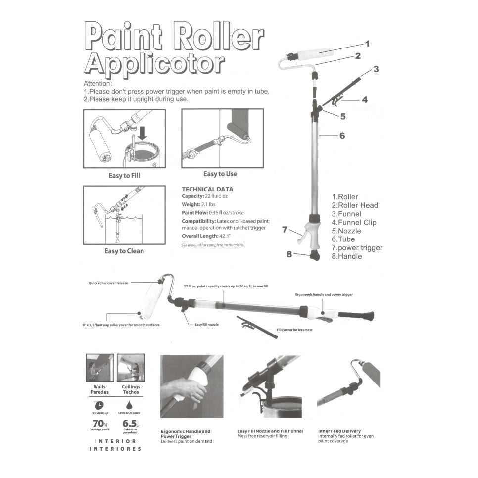Este rodillo extrae la pintura directamente de la lata y mantiene la pintura en el mango, lo que elimina la necesidad de una bandeja de rodillo tradicional. Esto te salvará del trabajo de flexión posterior de ir y venir constantemente para rellenar el rodillo de pintura.