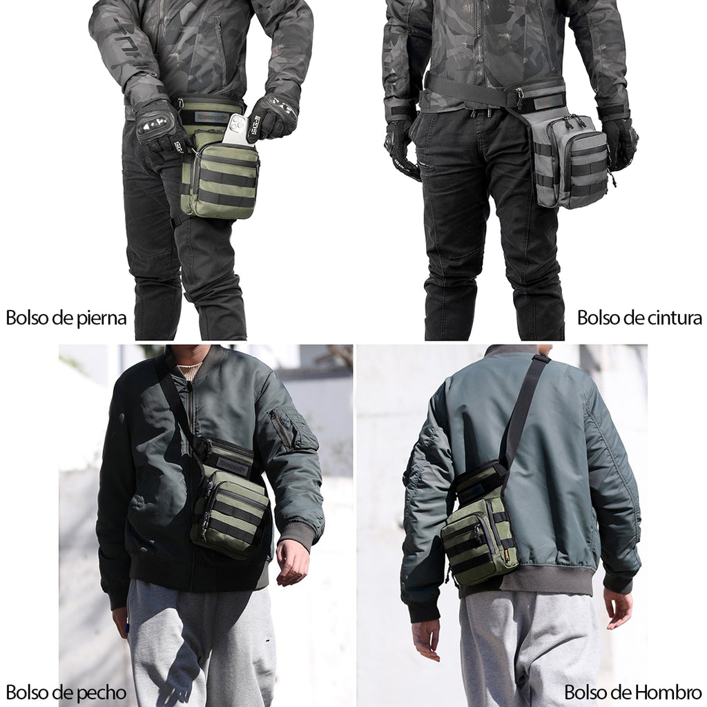 Bolso táctico multifuncional, con 10 compartimientos de diferentes tamaños para cargar todos los ítems de primera necesidad que quieres llevar en tu día a día.