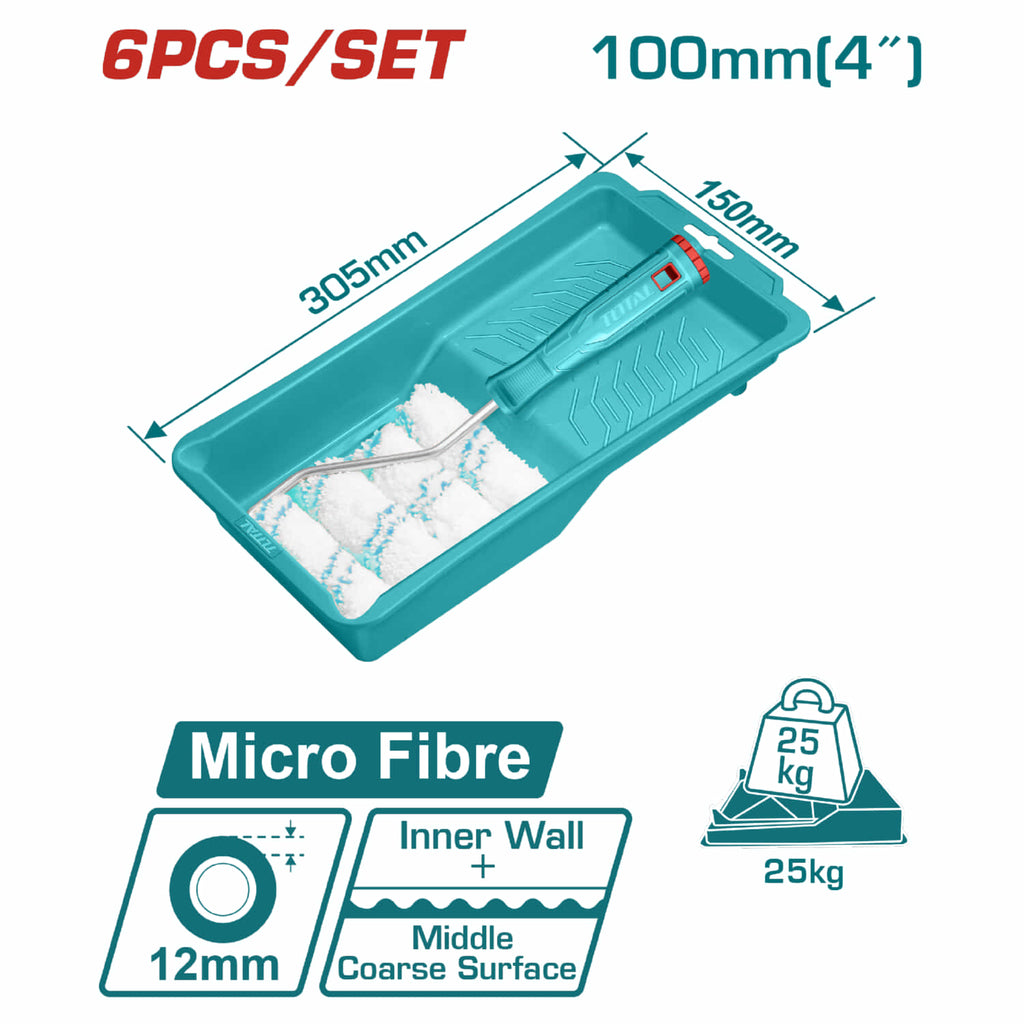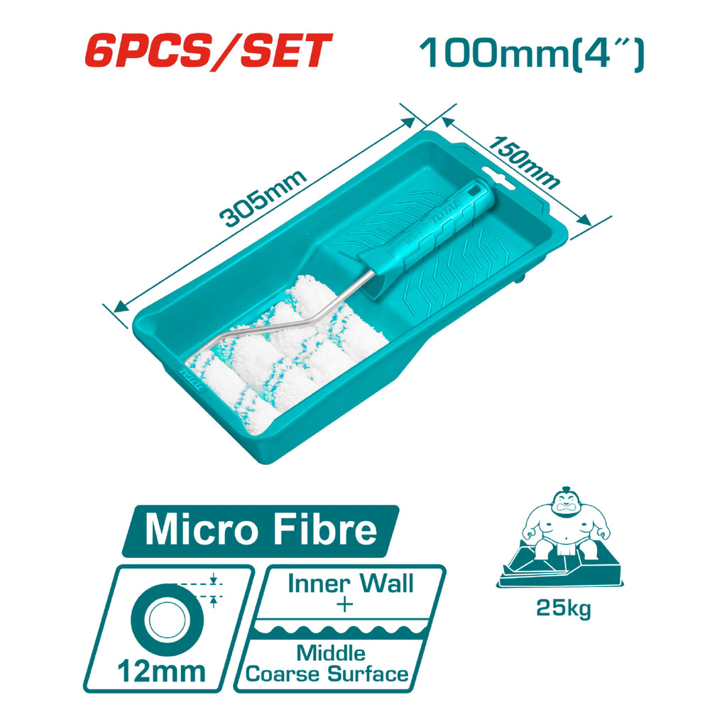 Rodillo para pintar + bandeja de 4'''' con 4 repuestos