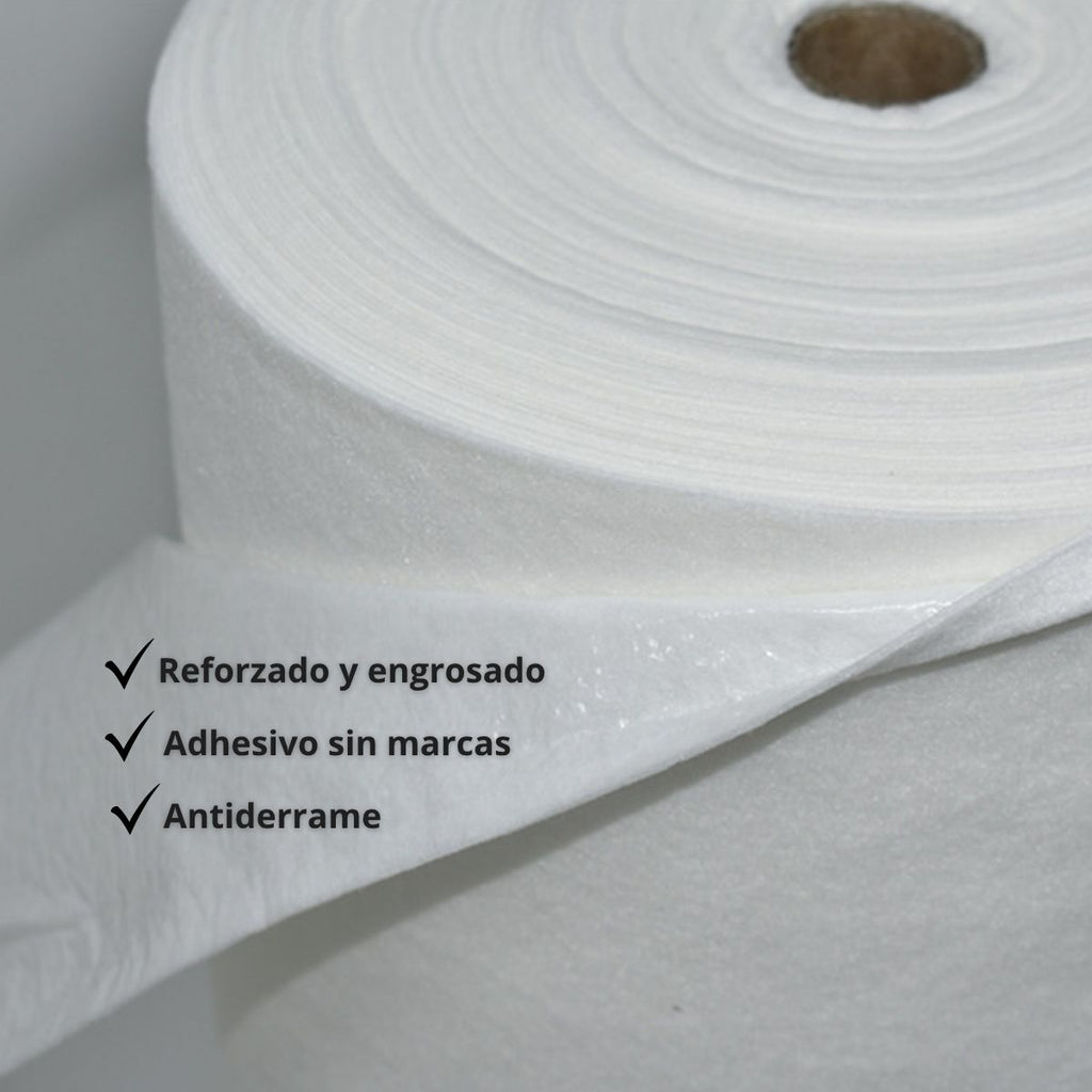 Protector De Piso Antiderrame Color Blanco Rollo De 39.4x 984.3'''' (1x25m) De PE. Lana Sintética Antideslizante Y Autoadhesiva.