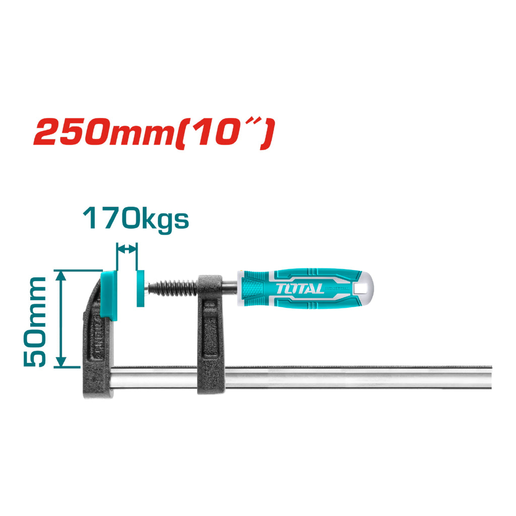 La abrazadera tipo F cuenta con una barra deslizante que permite ajustar fácilmente la capacidad de apertura de la herramienta para así poder sujetar materiales gruesos.
