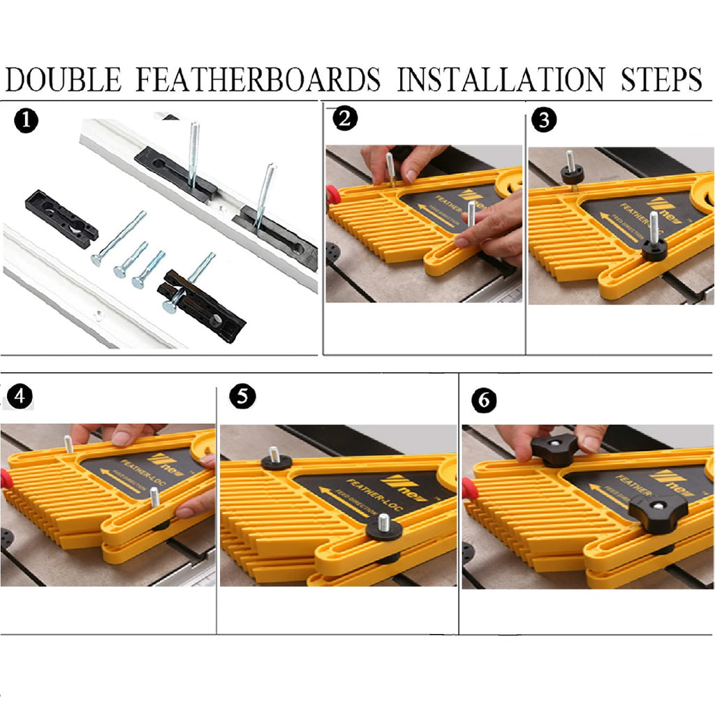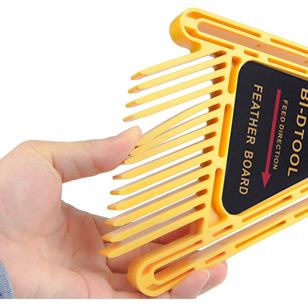 •Las guías cuentan con una fila de cerdas flexibles a lo largo del borde y cuando se colocan en la sierra de mesa, ayuda a mantener las piezas de trabajo presionadas firmemente hacia la mesa.