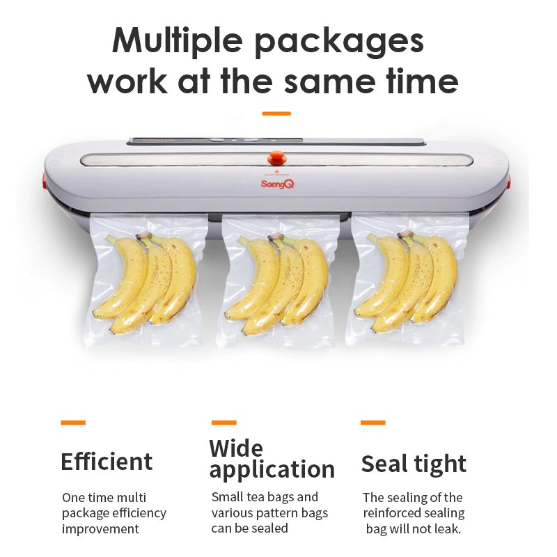 Cortador integrado: Haz bolsas personalizadas de rollos o corta las bolsas selladas.