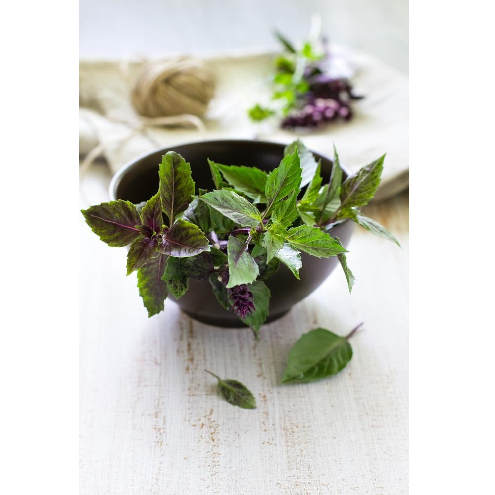 -Esta variedad de albahaca produce hojas verdes hermosas y sabrosas con acentos morados. Tiene un sabor a regaliz fuerte pero agradable y puede crecer 24'' de altura.