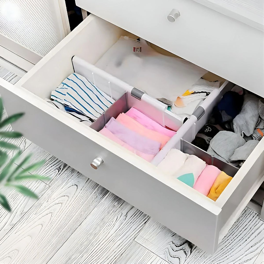 - Diseño ajustable que se adapta a diferentes tamaños de cajones, sin necesidad de herramientas.