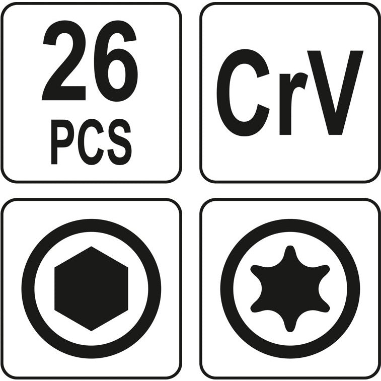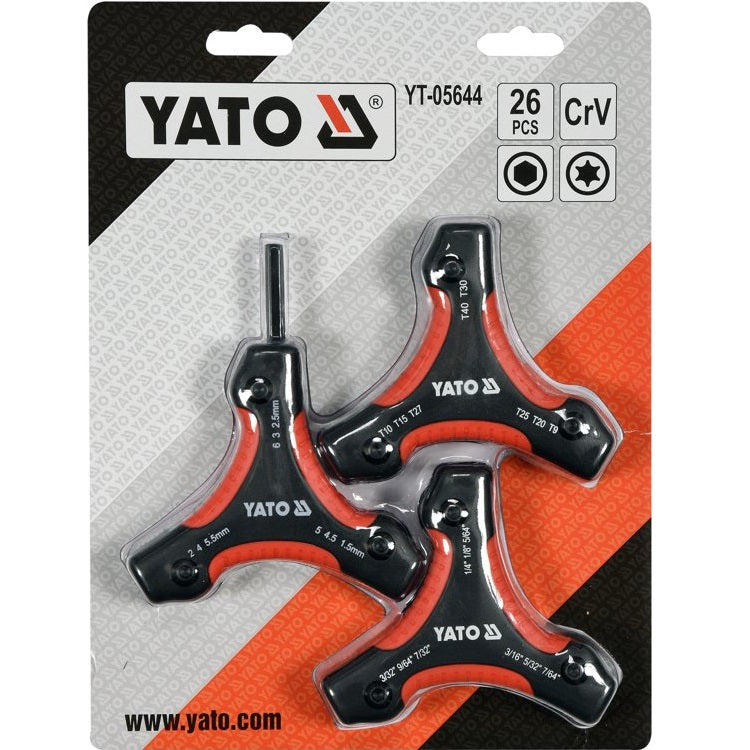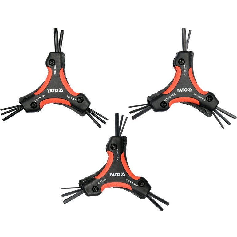 Set de 3 Juegos de LLaves Allen Universales ( 26 pcs ). Para aflojar pernos y tornillos, entre otros. Material: Acero CrV de alta calidad. Medidas: - 1.5, 2, 2.5, 3, 4, 4.5, 5, 5.5, 6 mm. TORX: T9, T10, T15, T20, T25, T27, T30, T40 - 5 / 64ʺ, 3 / 32ʺ, 7
