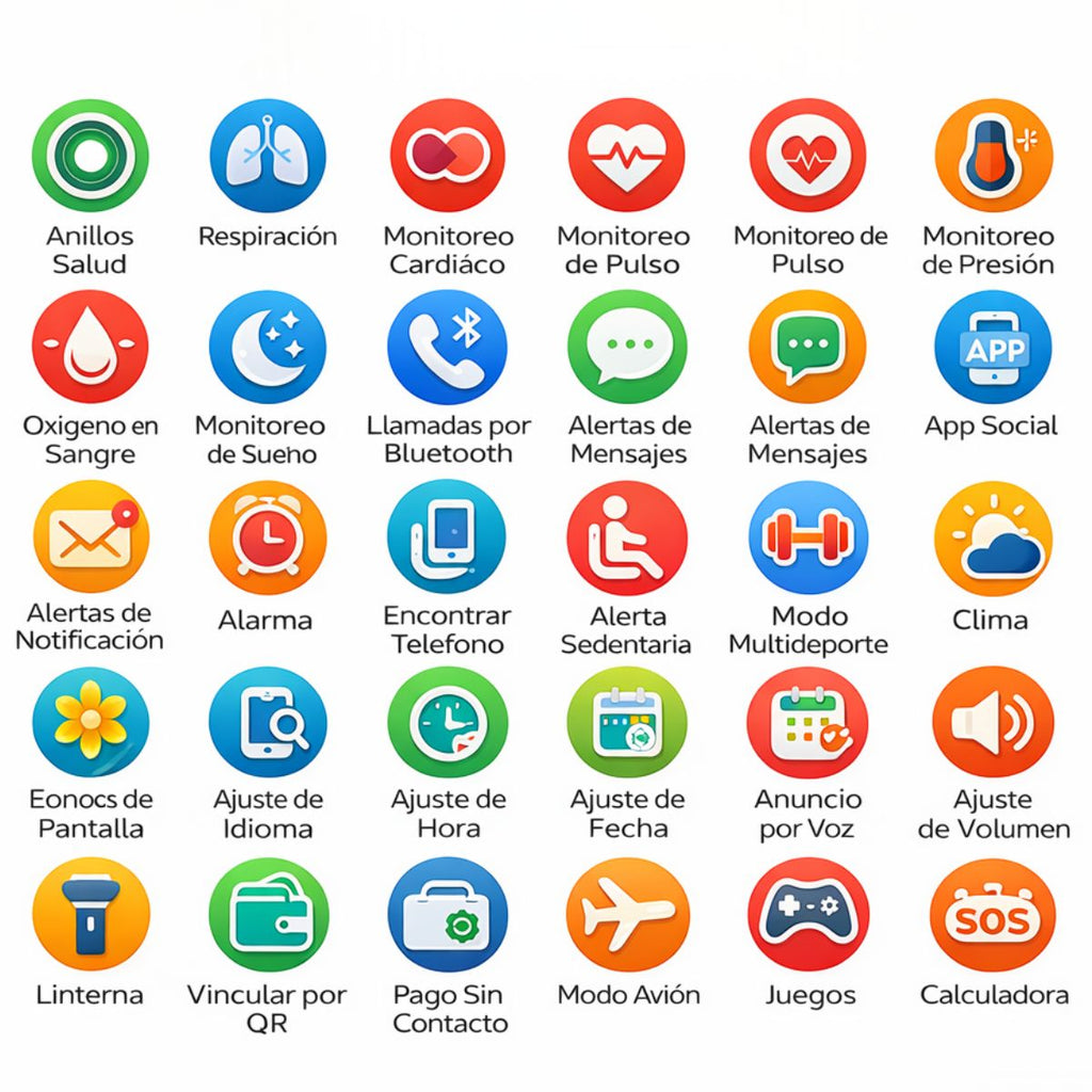 - Monitoreo de salud integral: frecuencia cardíaca, oxígeno en sangre (SpO₂), respiración, sueño y actividad diaria