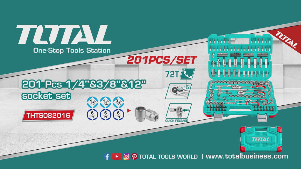 Juego de Dados 201 Piezas (1/4'''', 3/8'''' y 1/2'''') con Estuche Portátil
