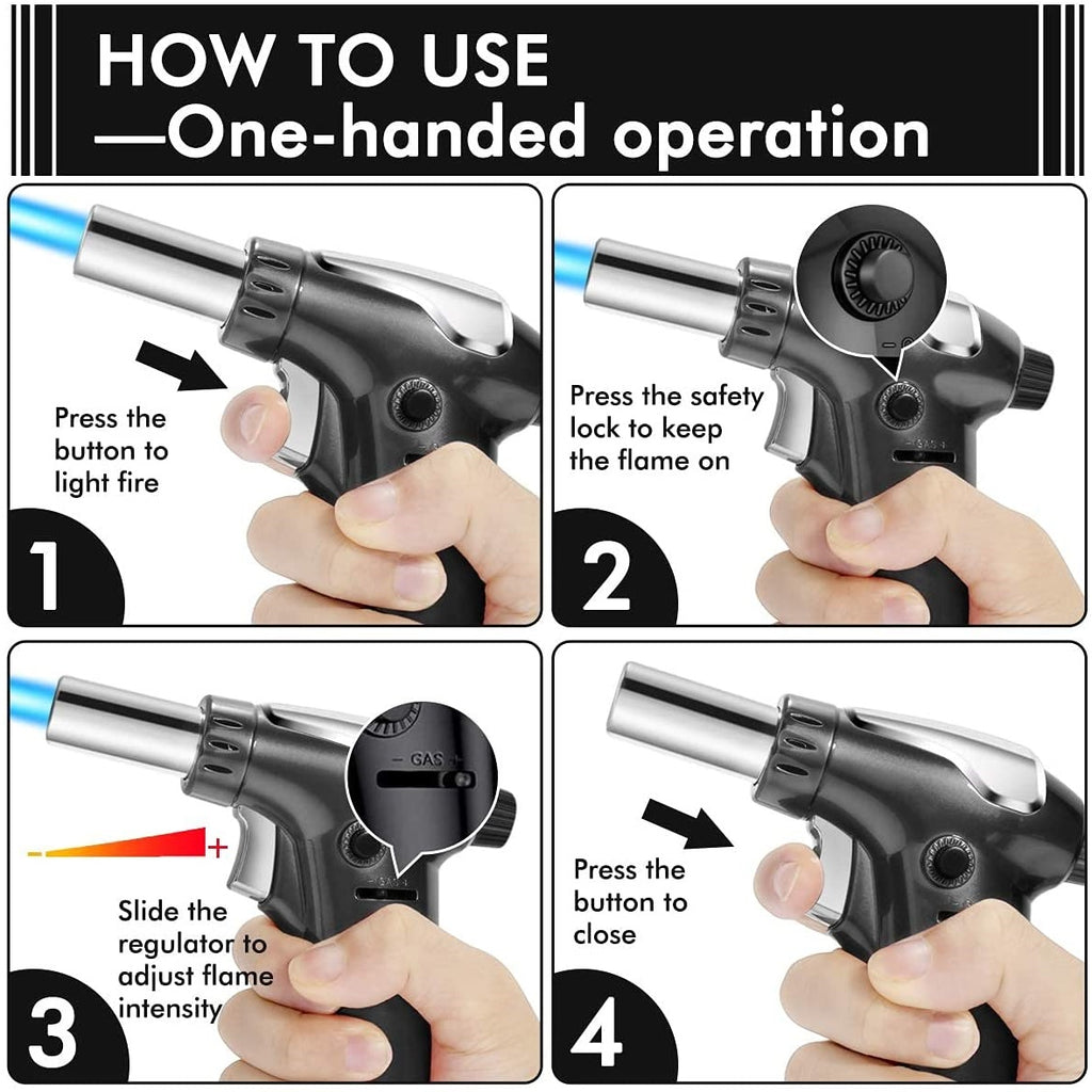 -Es portátil y ligero, ideal para caramelizar azúcar, sellar un filete, derretir queso, tostar migas de pan y barbacoas.