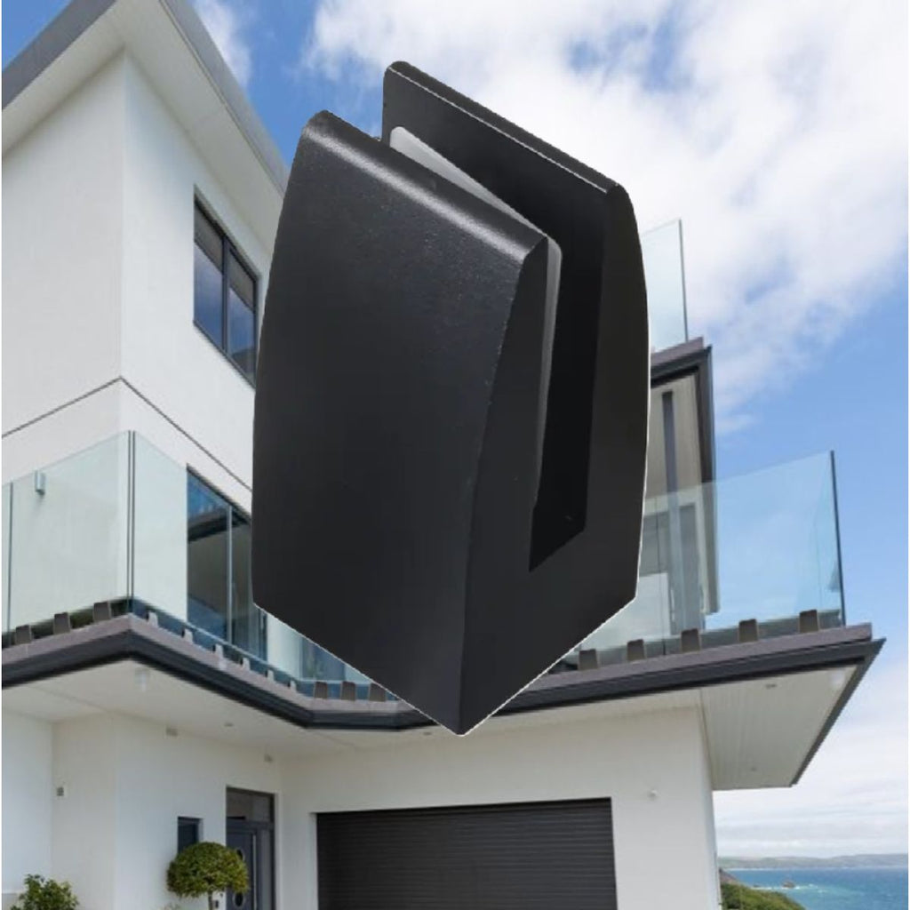 Soporte clip para barandas de vidrio 10-14 mm. Aluminio color negro satinado.