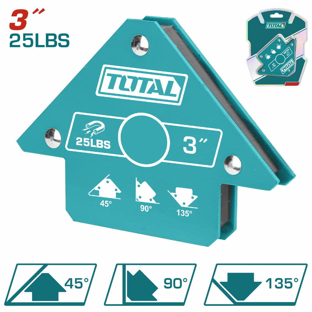 Soporte de Soldadura Magnetica de 3''. Fuerza de Traccion 25 Lbs. Angulos 45°, 90°, 135°, Material Iman y Acero.