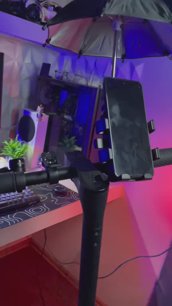 Soporte para Celular con Sombrilla para Manubrio de Moto y Bicicleta. Porta Celular Ajustable con mini paraguas para Protección Solar y Lluvia.