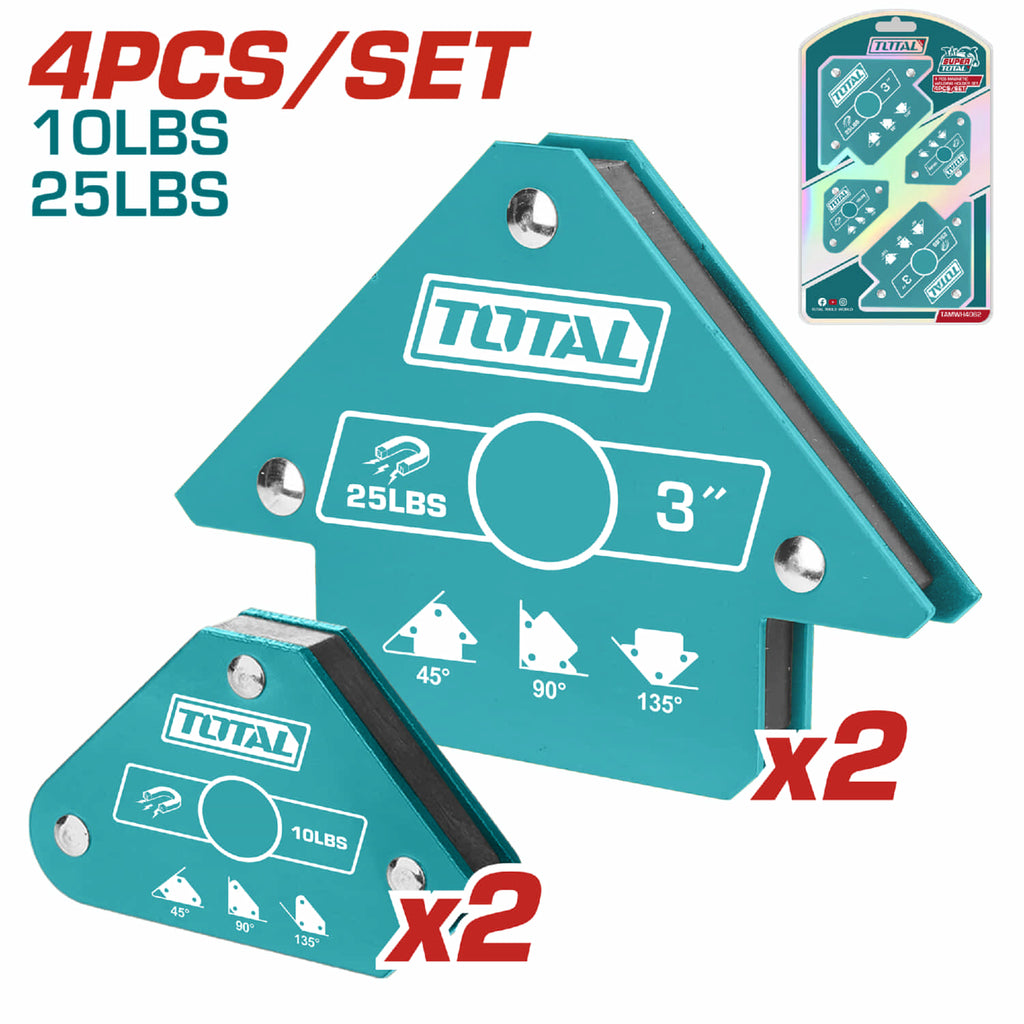 | Características | 45º, 90º, 135º. Imán y Acero. 10/25 lbs. Set 4 pzas. |