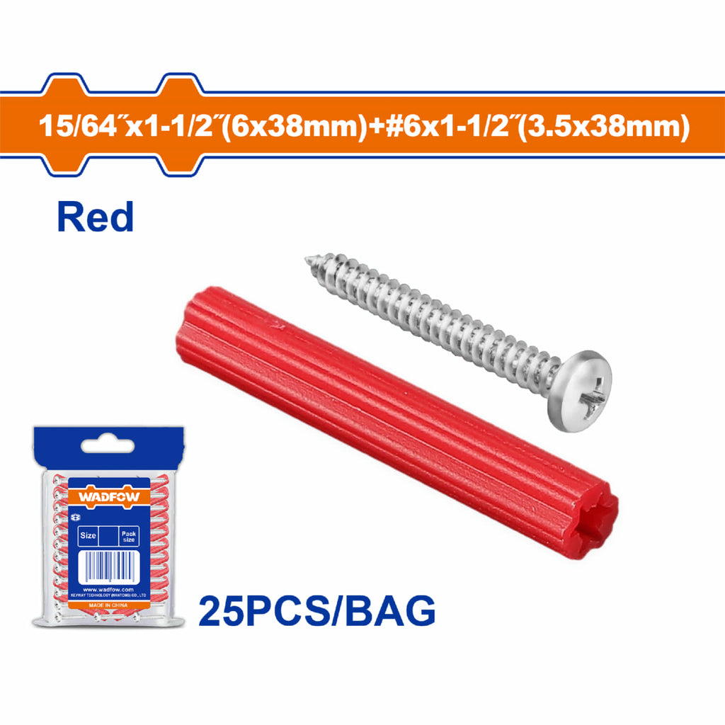 | Características | Tornillos #6x1-1/2" y Anclaje de plástico Rojo 15/64"x1-1/2" Set de 25 piezas. |