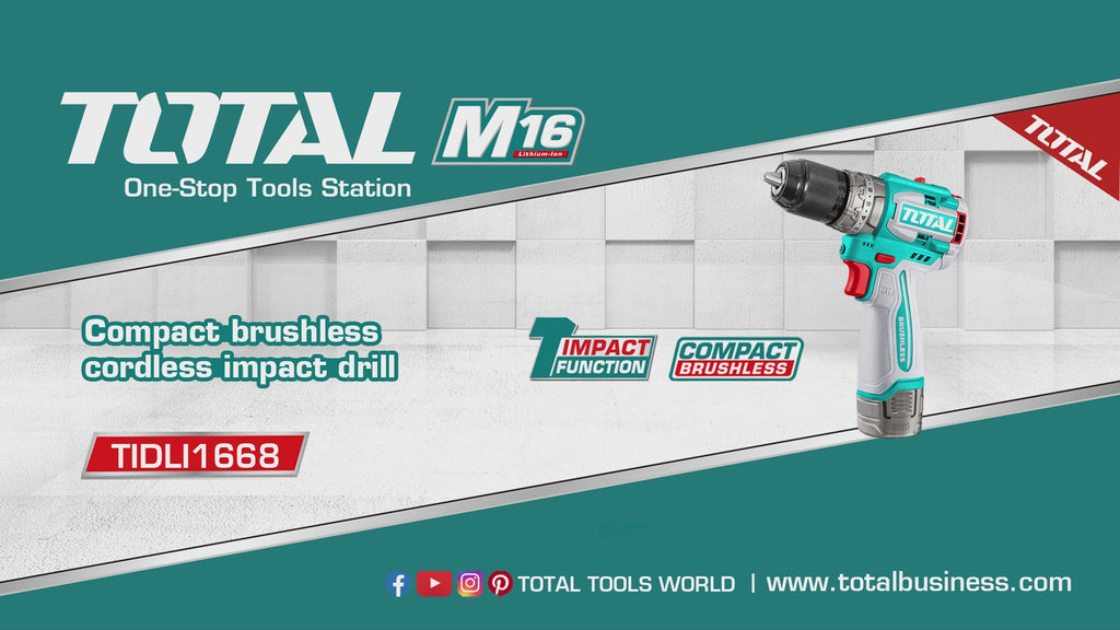 Taladro Inalámbrico 16V 1/2'' 60 Nm Impacto. Motor Sin Escobillas. Incluye batería y cargador. Super Total