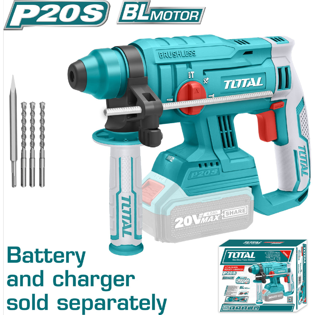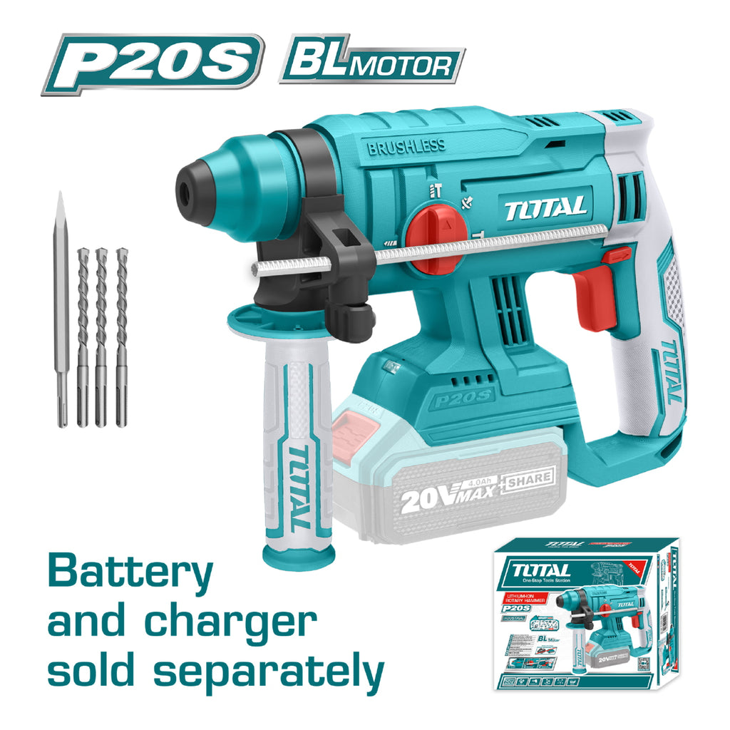 Taladro Percutor SDS Sin escobilla en el Motor. Cap. máx. de perforación: 22 diámetro en concreto. De batería Litio-Ion. No incluye B/C. Fuerza de Impacto: 1.5 J. Ratio de Impacto: 0-4700 rpm. Max velocidad sin peso: 1350 rpm. Trae 3 piezas para taladrar y 1 pieza cincel.