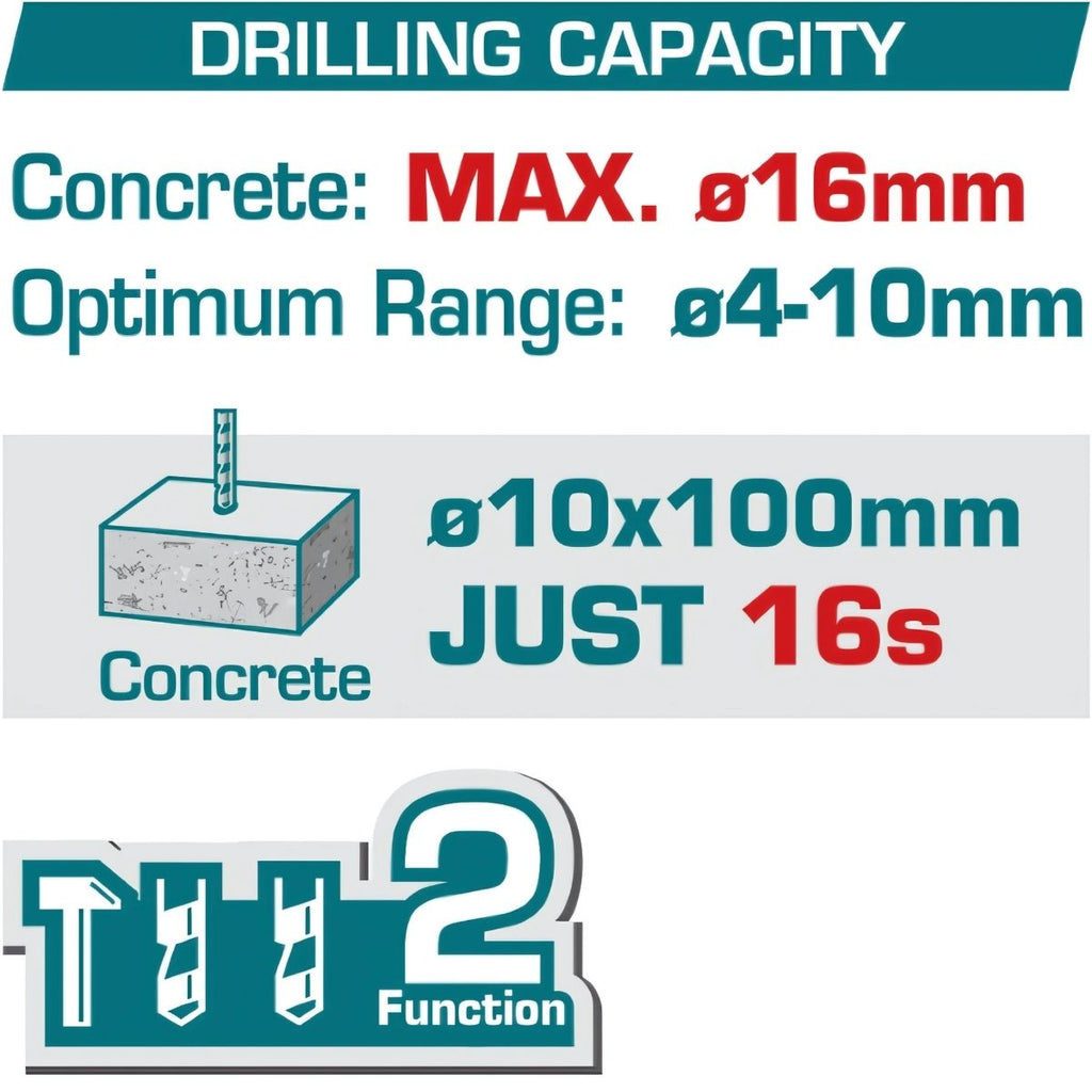 -Capacidad máxima de perforación: Φ16 en concreto.