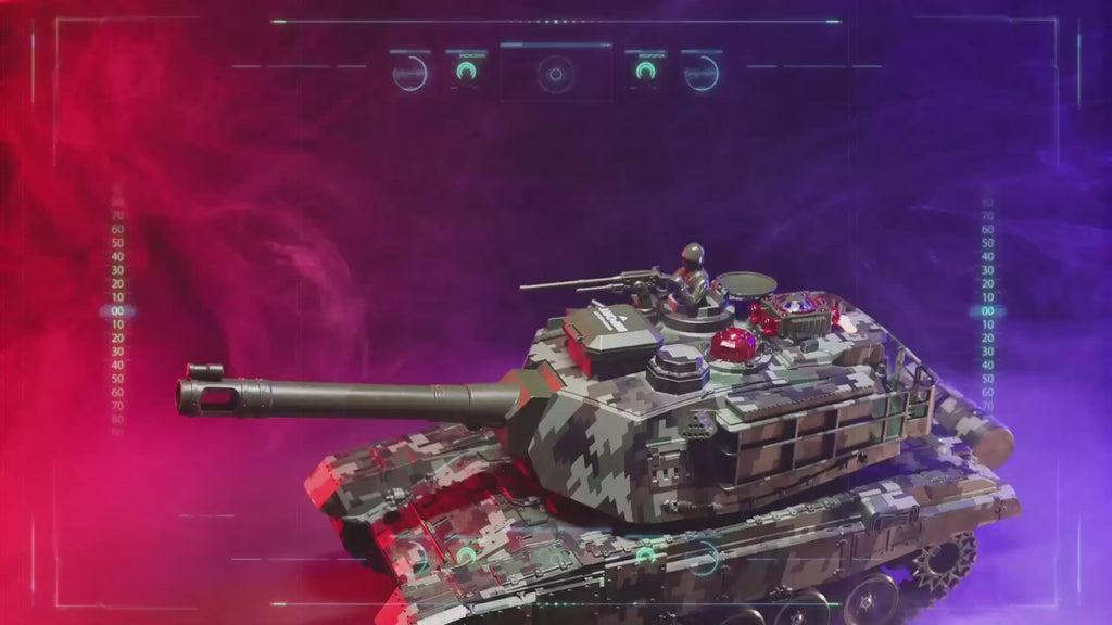 Tanque de guerra a control remoto con diseño camuflado realista ideal para juegos tácticos y simulación militar.