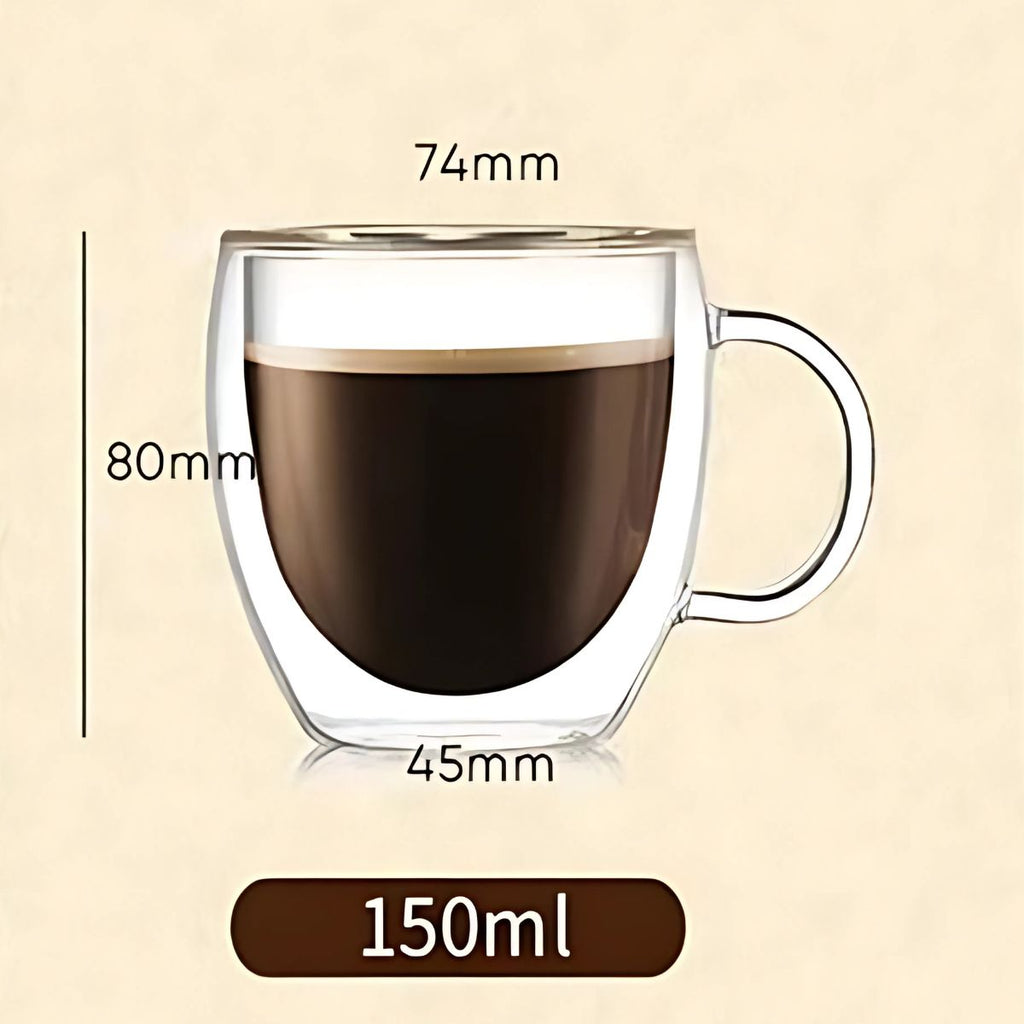 Taza De Vidrio Con Doble Pared Borosilicato. 5Oz (150Ml) Vaso Con Asa Ideal Para Bebidas Calientes. (Unidad)