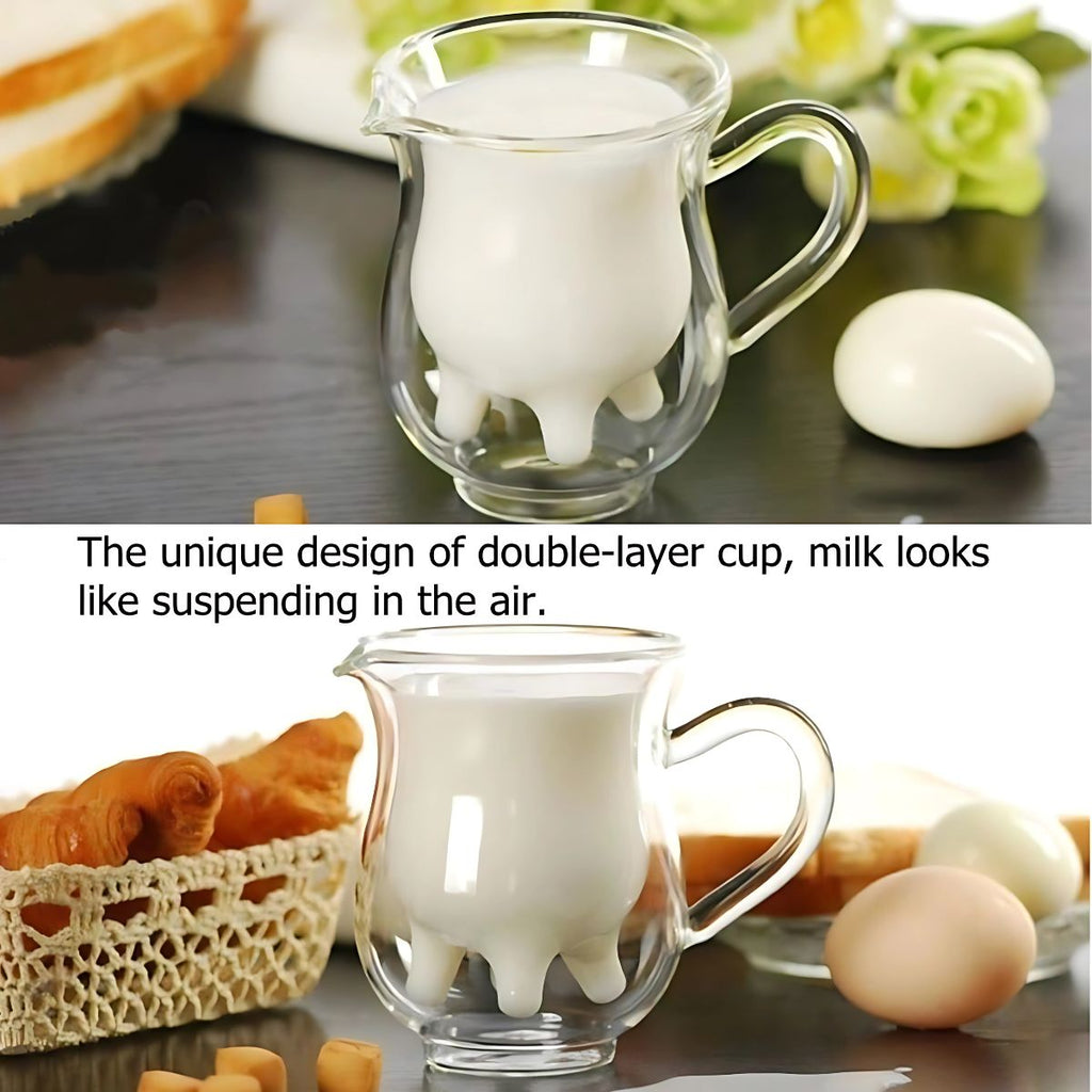- Diseño único y creativo: Taza de vidrio doble con forma interna de ubre de vaca, ideal para bebidas como leche, café o té.