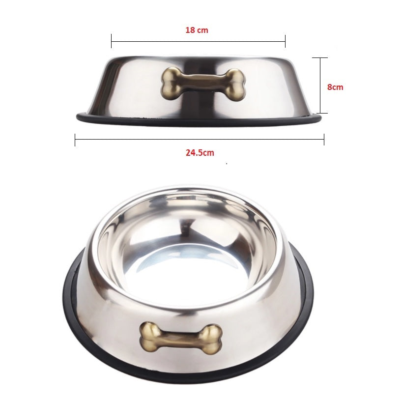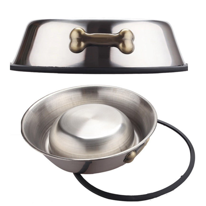 •Tazón de acero inoxidable con borde antideslizante para mascotas.