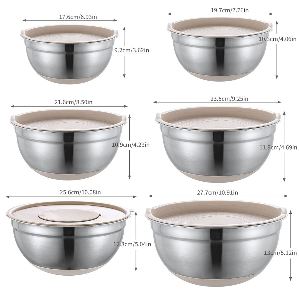 - Set completo de 6 piezas: Incluye tazones de diferentes tamaños para cubrir todas tus necesidades de cocina, desde mezclar ingredientes hasta almacenar alimentos.