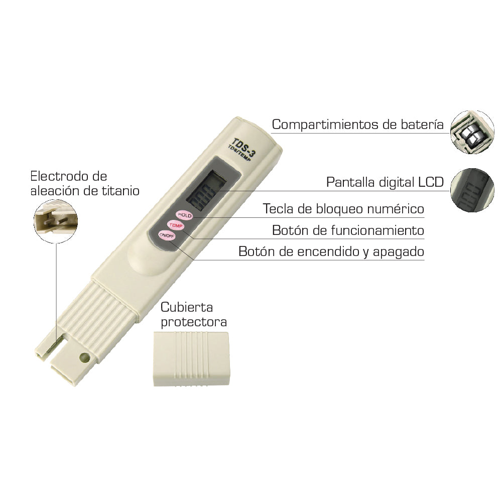 TDS-3 Medidor De Pureza Del Agua, Mide Las Particulas Por Millon Ppm En El Agua
