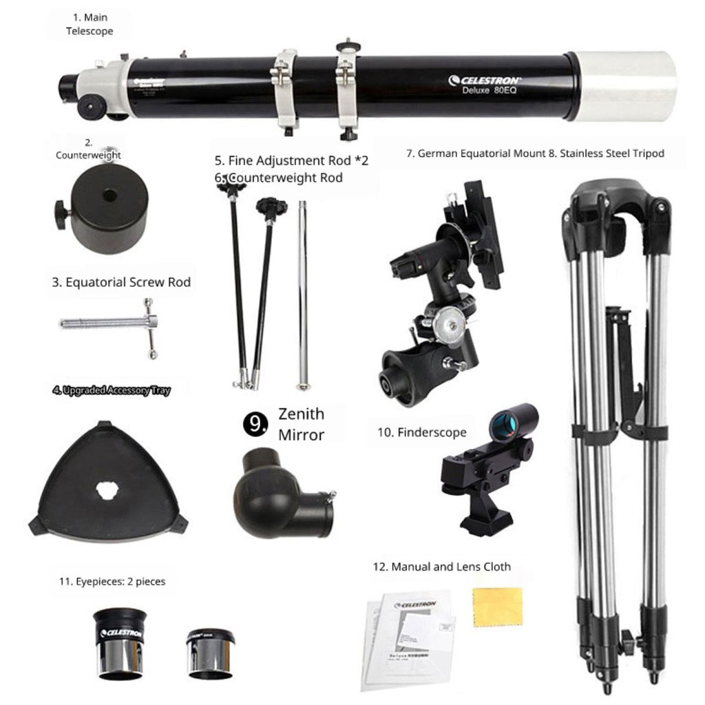 Telescopio Astronómico Profesional Celestron 80Mm. Alta Potencia Con Trípode Y Lente Barlow 3X.