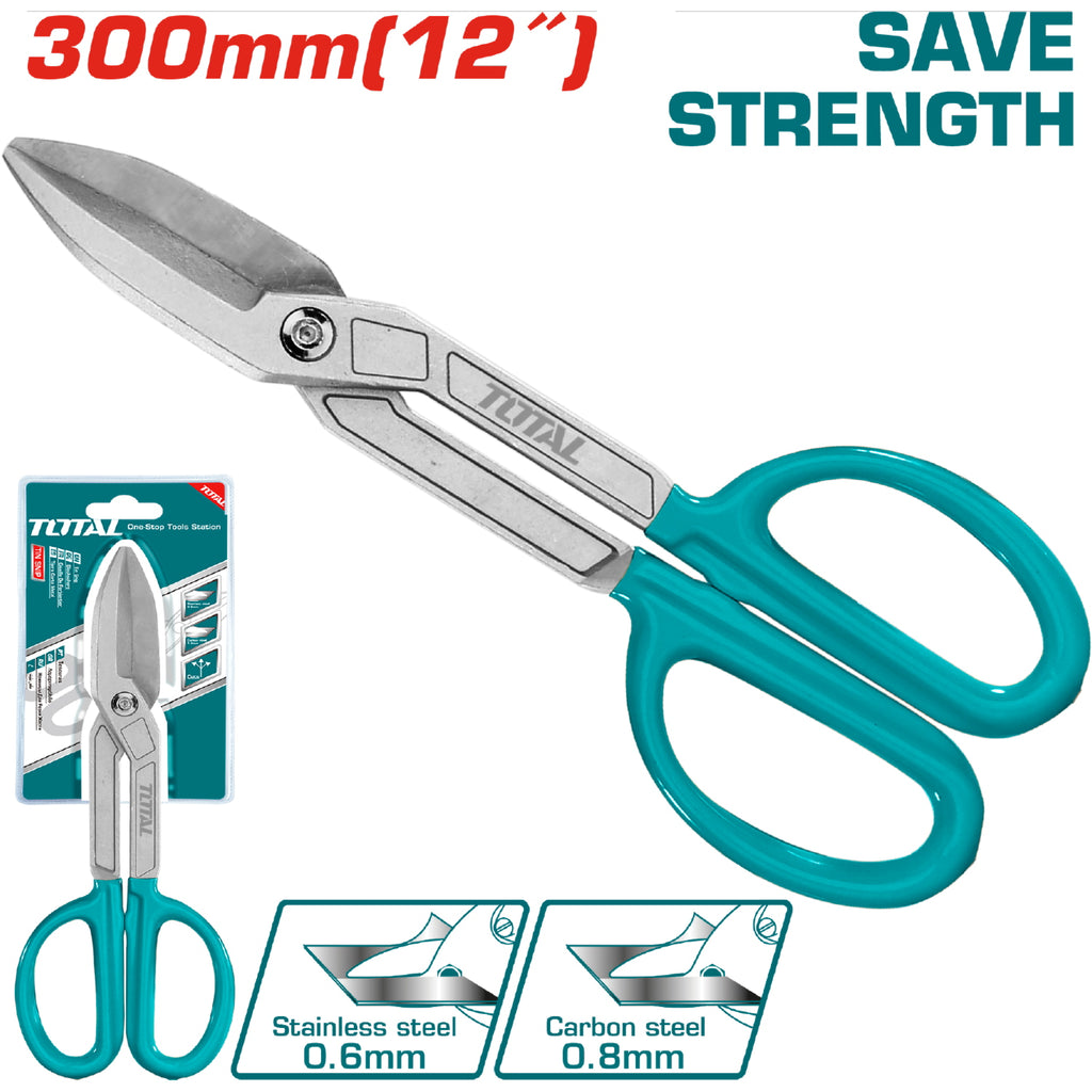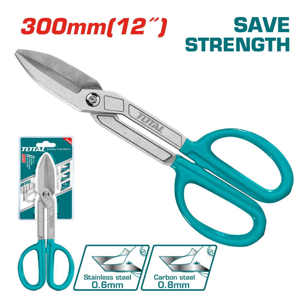 Tijera de Hojalateria de 12''. Espesor máx. De corte: Acero al carbono ≤ 0.8 mm. Acero inoxidable ≤ 0.6 mm.