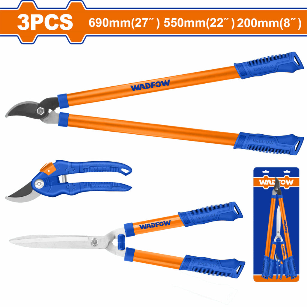 | Características | Incluye:1 tijera de podar de 200 mm/8'' 1 tijera de seto de 550 mm/22'' 1 tijera de podar de 690 mm/27'' Cuchilla tratada térmicamente. |