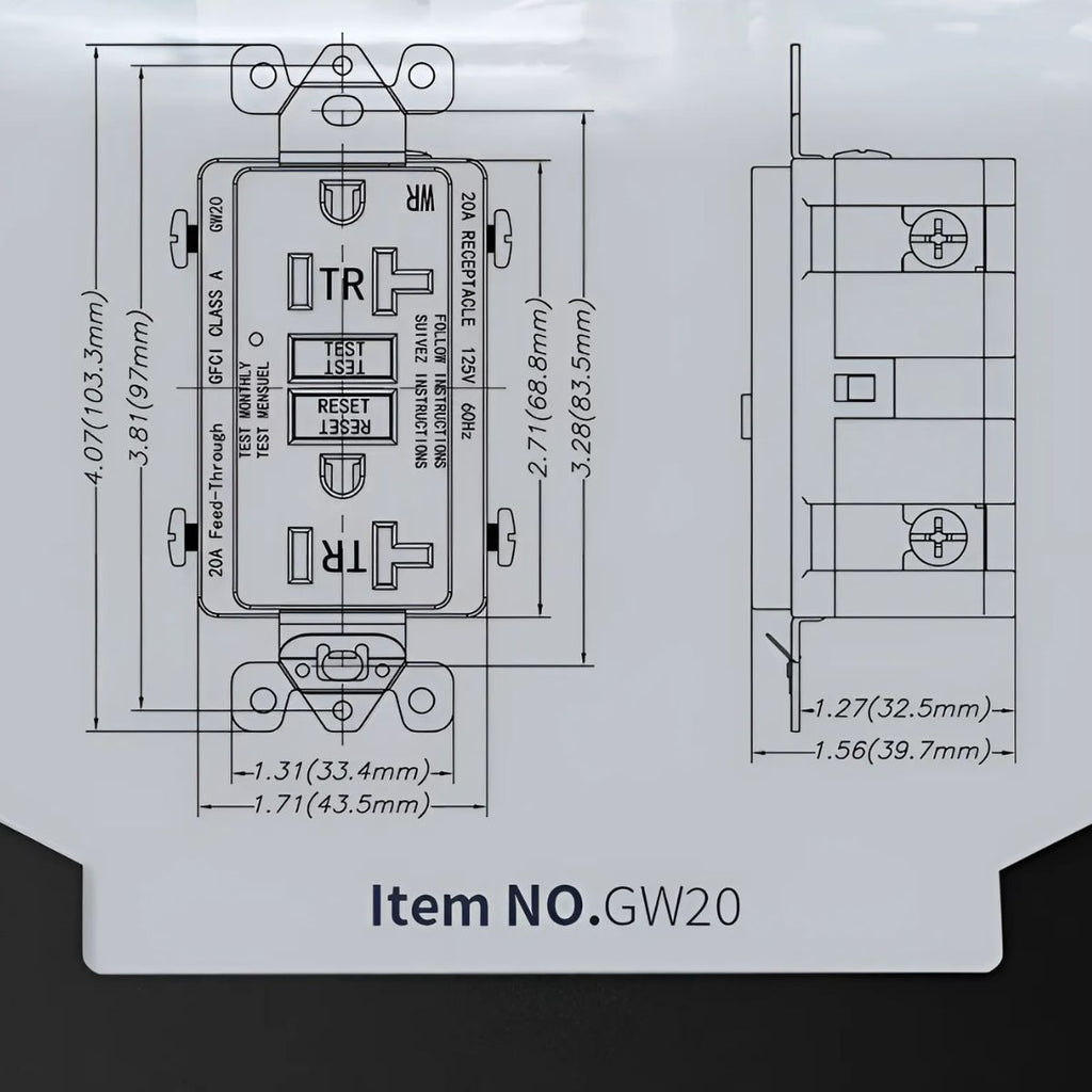 - Protección GFCI 20A 125V: corta la corriente eléctrica en milisegundos en caso de fuga o contacto con agua, brindando máxima seguridad.