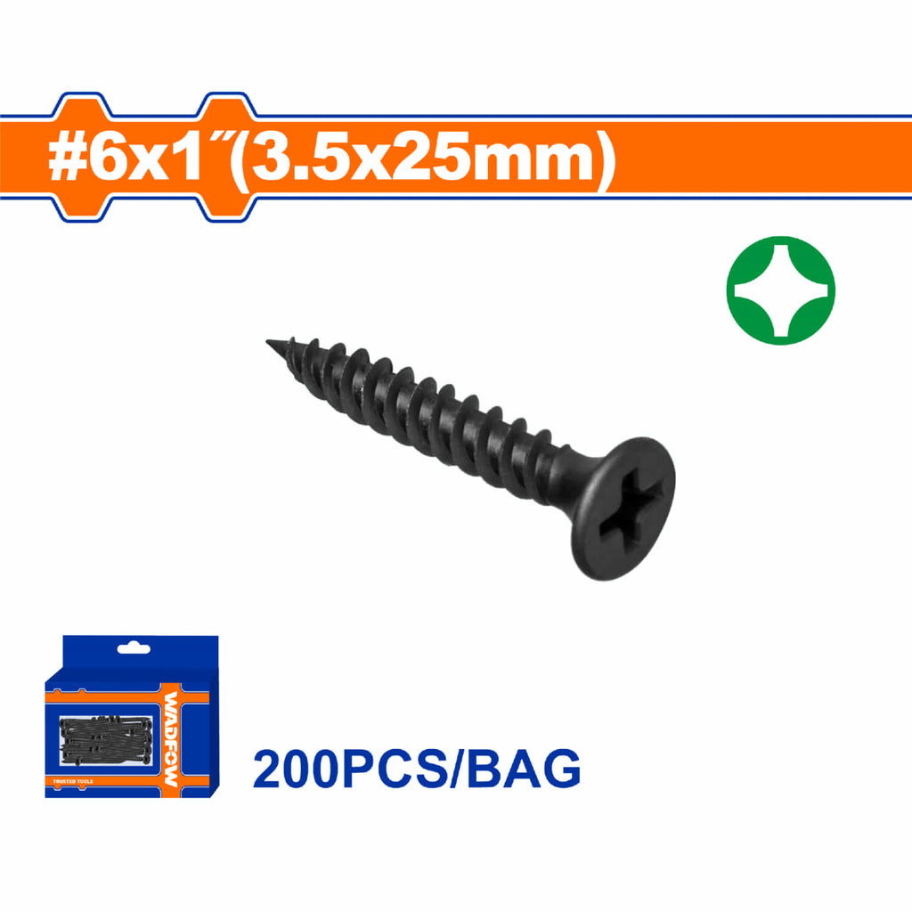 | Características | Tornillos para Gypsum (Yeso) Rosca fina. Cabeza de trompeta. Fosfatizado. Phillips. |