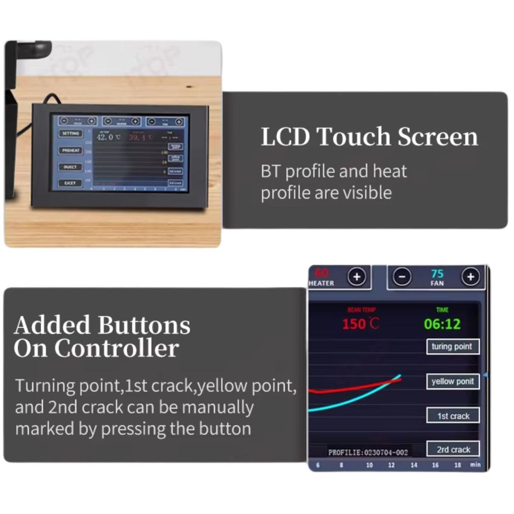 Tostadora de Café Profesional 500g con pantalla táctil 7”. Máquina Tostadora de Café en Grano 1000W. Control Automático, Manual y Artisan.