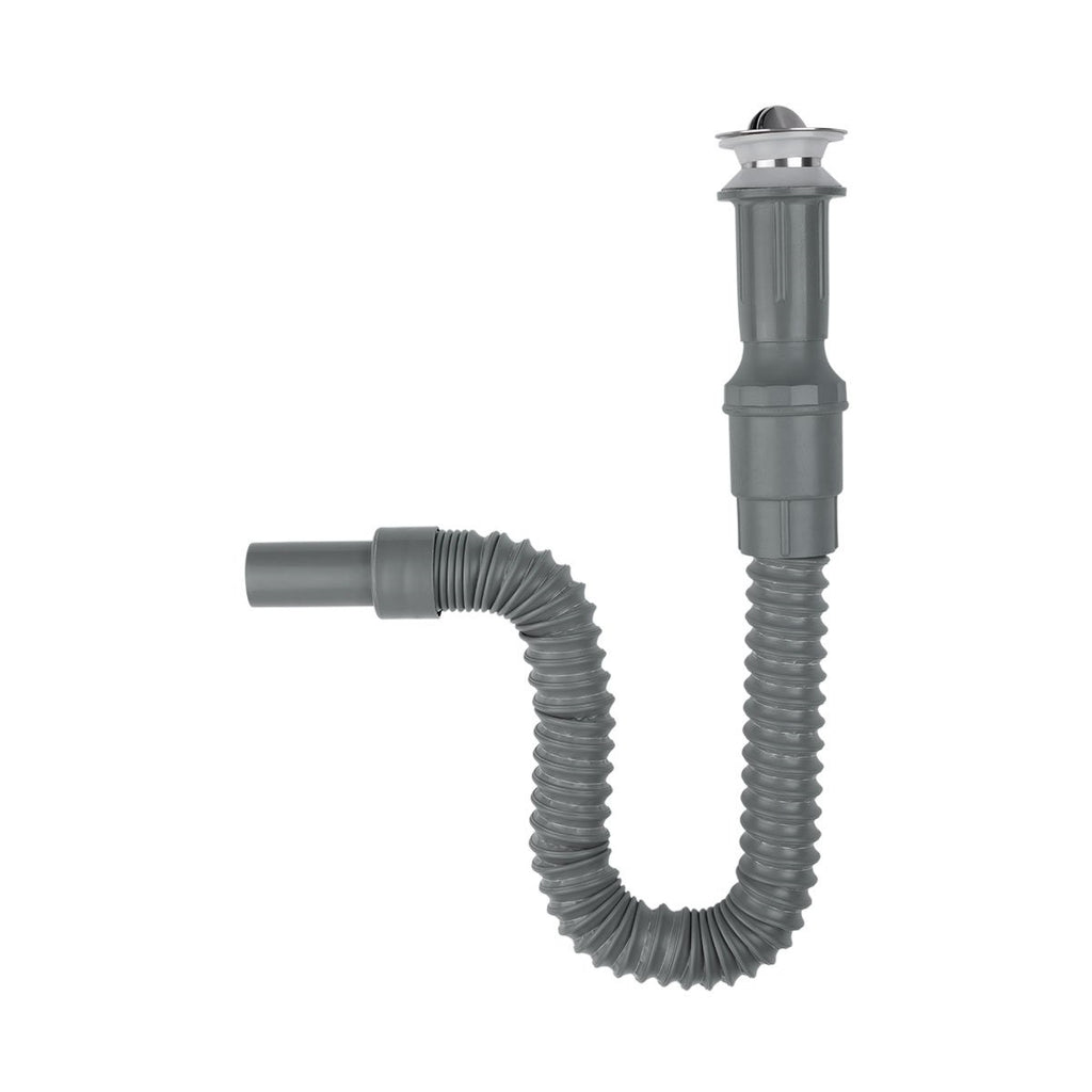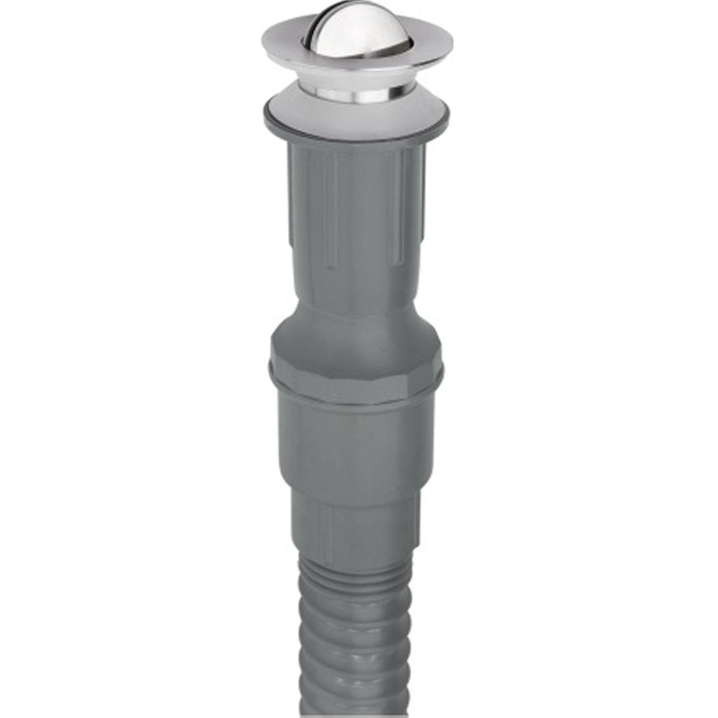 Céspol plástica color gris para LAVABO, con contra, rebosadero y funcionamiento tipo moneda cromada; también incluye chupón y chapetón para la instalación a drenaje.