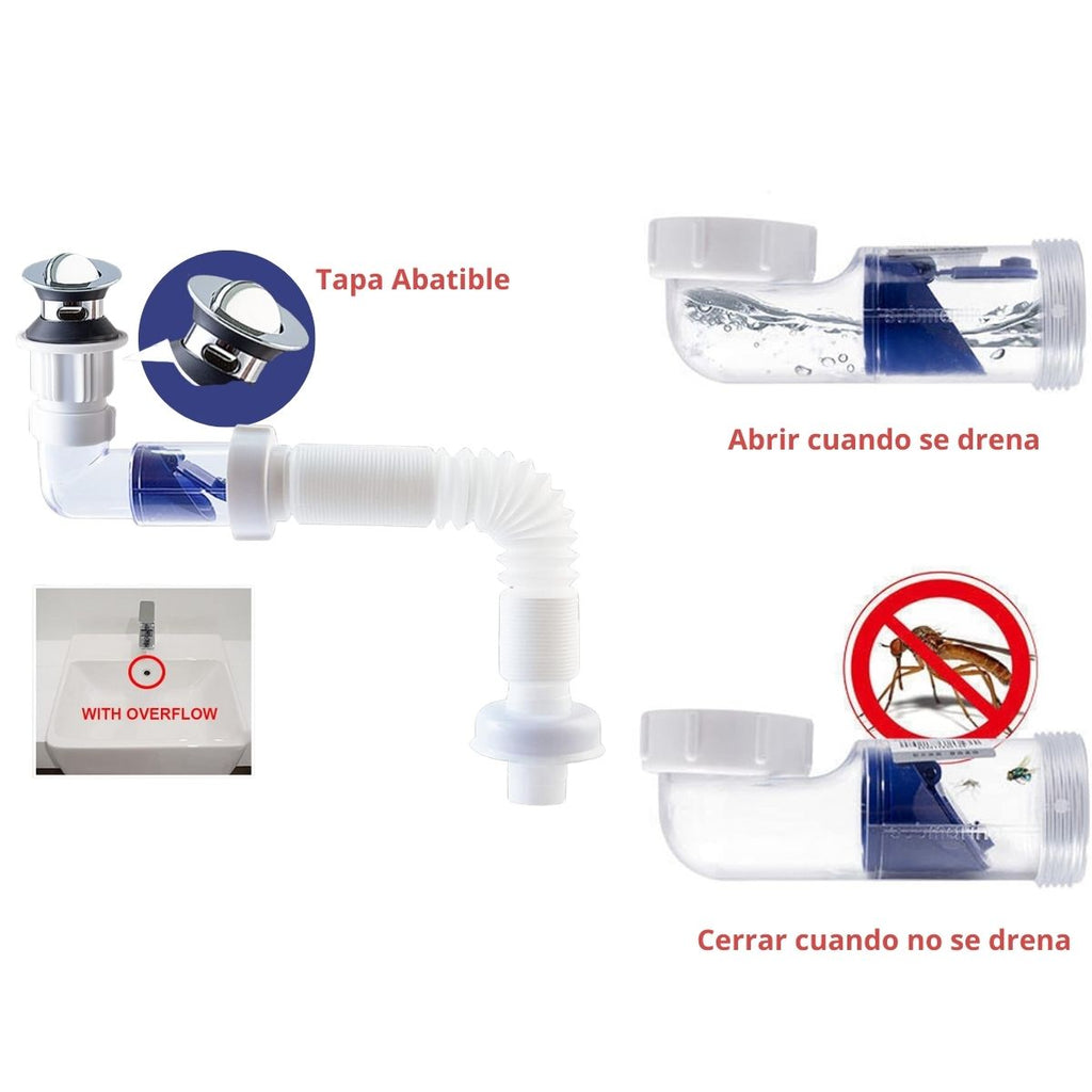- Compatible con lavabos, fregaderos, lavaderos y otros sistemas de desagüe.